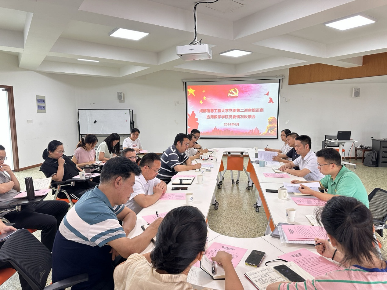 2024年6月24日下午3:40,党委第二巡察组巡察应用数学学院党委情况反馈会在信息楼6楼多功能会议室召开。学校党委常委、副校长陈权亮,党委巡察工作领导小组成员、党委巡察工作办公室主任李林襁,党委组织部、党委统战部副部长孔晋红,党委第二巡察组组长易平,联络员李海林以及应用数学学院党政班子成员、教研室主任及教师代表参加了反馈会。会议由应用数学学院党委书记李明主持。