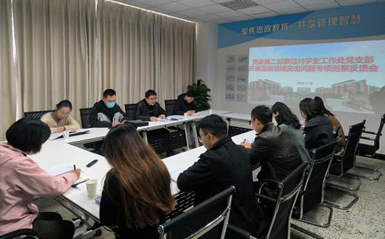 2025年11月18日,党委第二巡察组专项巡察学生工作处党支部国资领域突出问题情况反馈会议在信达楼A202会议室召开。党委第二巡察组组长王晓锋及巡察组全体成员,学生工作处领导班子、科级干部、职工代表参加了反馈会。会议由党委学生工作部部长丁恒康主持。